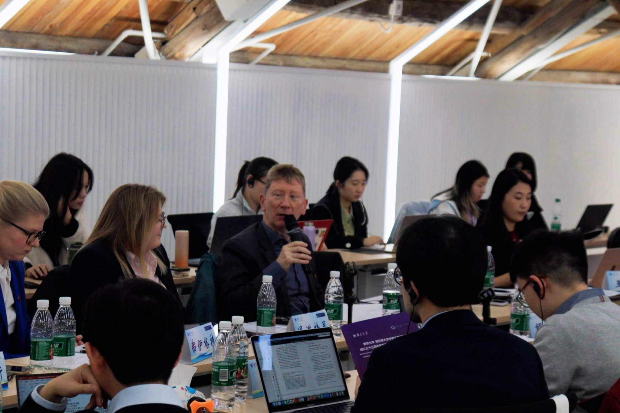 图8-14 克劳泽教授、冯洁语副教授、徐凌波副教授、刘畅研究员与郑慧、张苒苓、福格特三位报告人交流